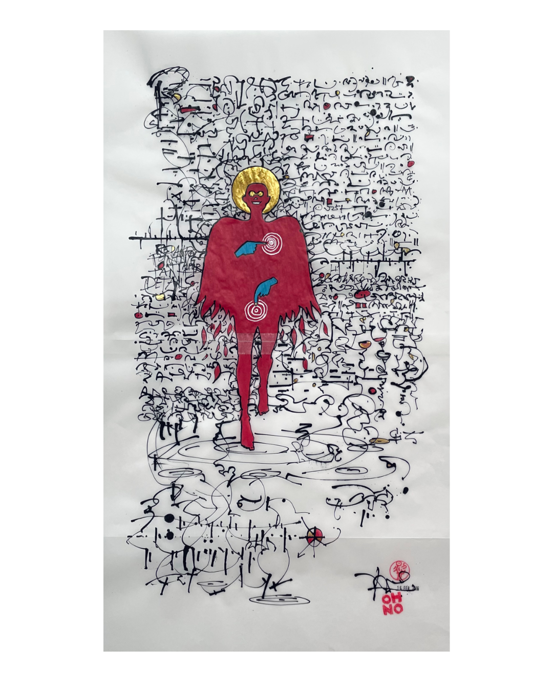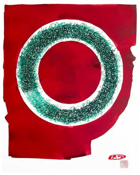 M.J. Ottos Tusche-Arbeiten kombinieren Texte aus dem Zen-Buddhismus und anderen inneren Wegen mit (Reise-) skizzen, freien Assoziationen und dem wiederkehrenden Kreismotiv.
